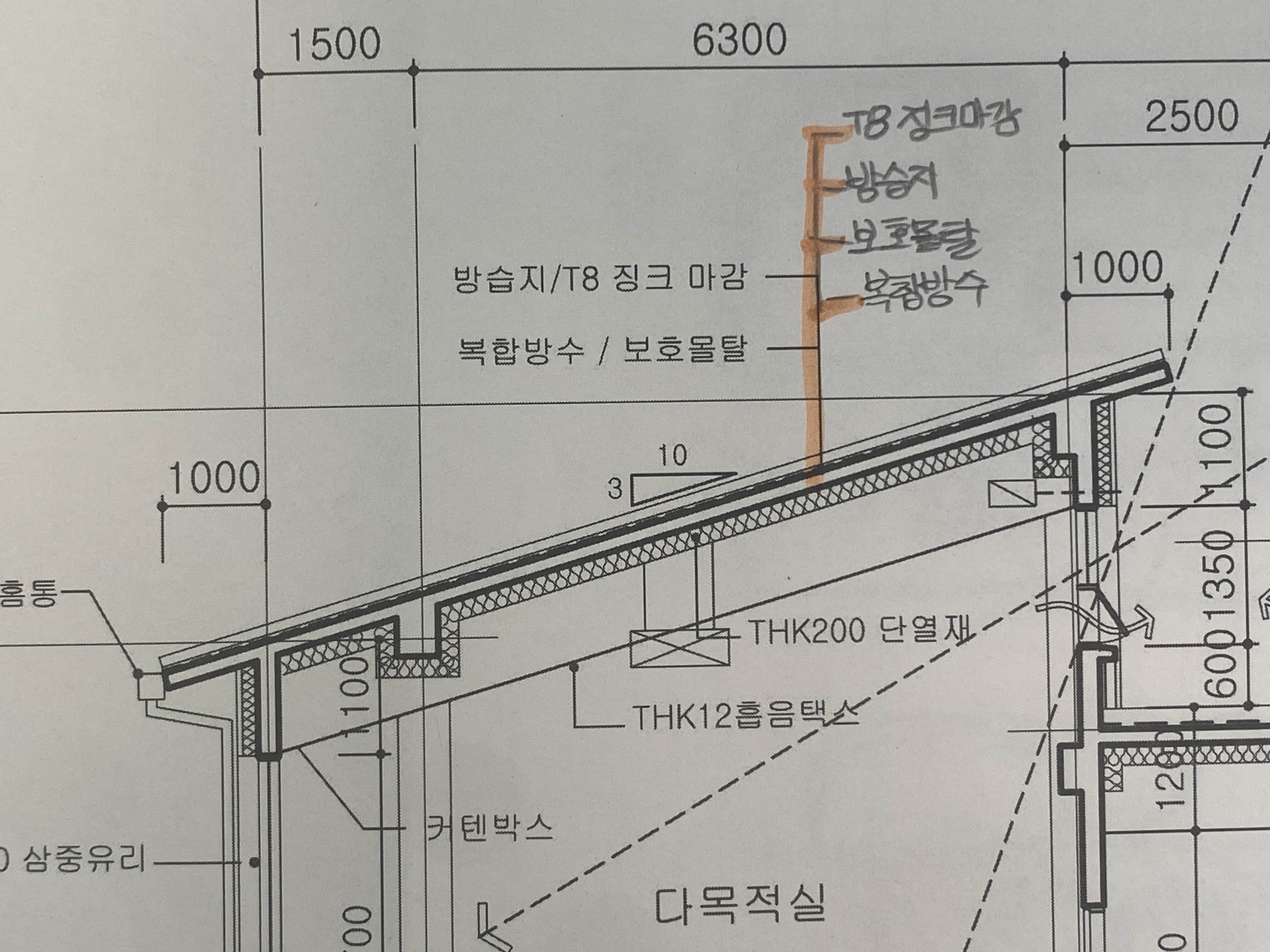 캐노피 상부 철콘 : 액체방수 위 구배몰탈