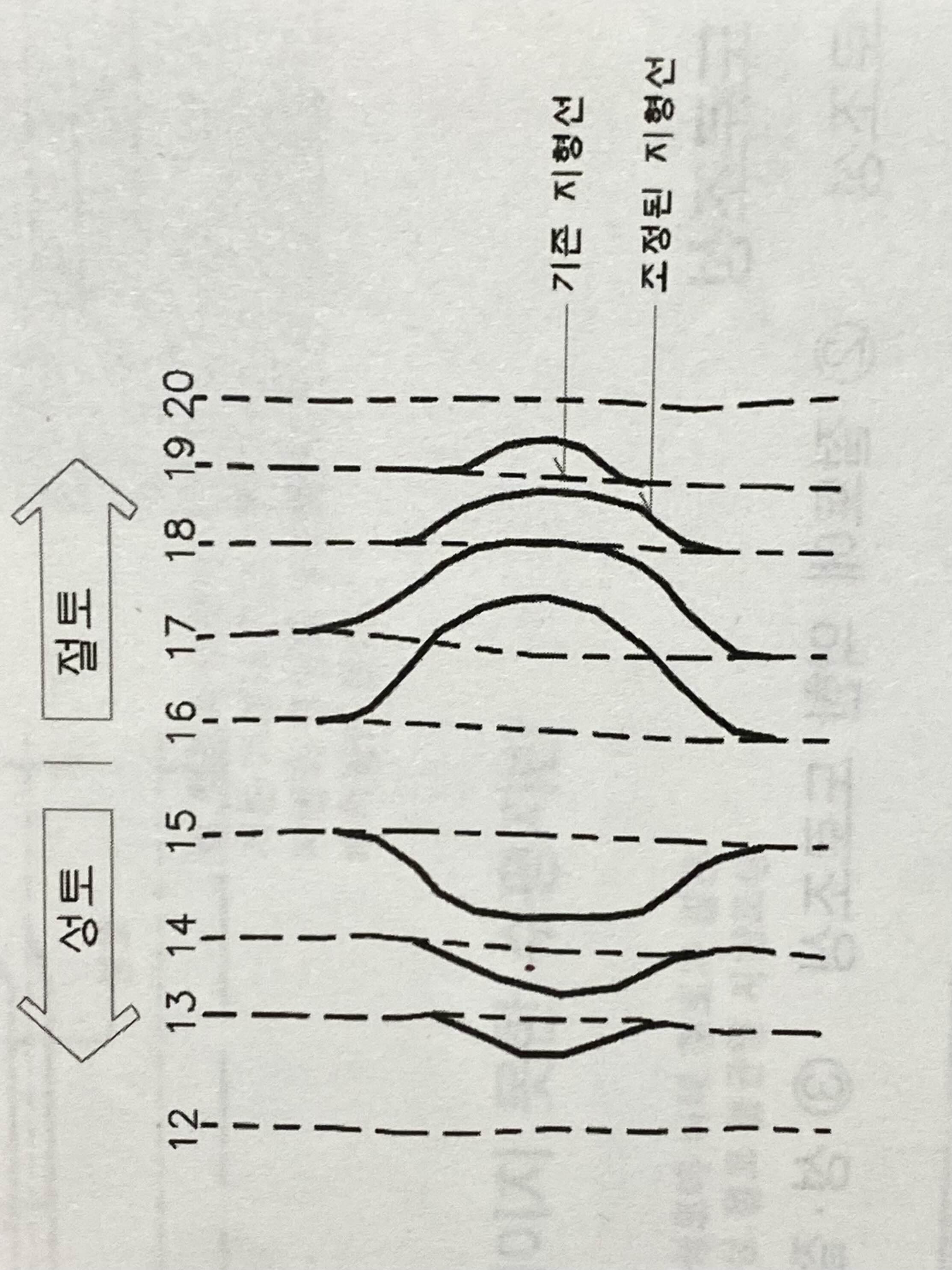 - 도로의 요구경사도에 맞게 노면의 등고선 간격 조정