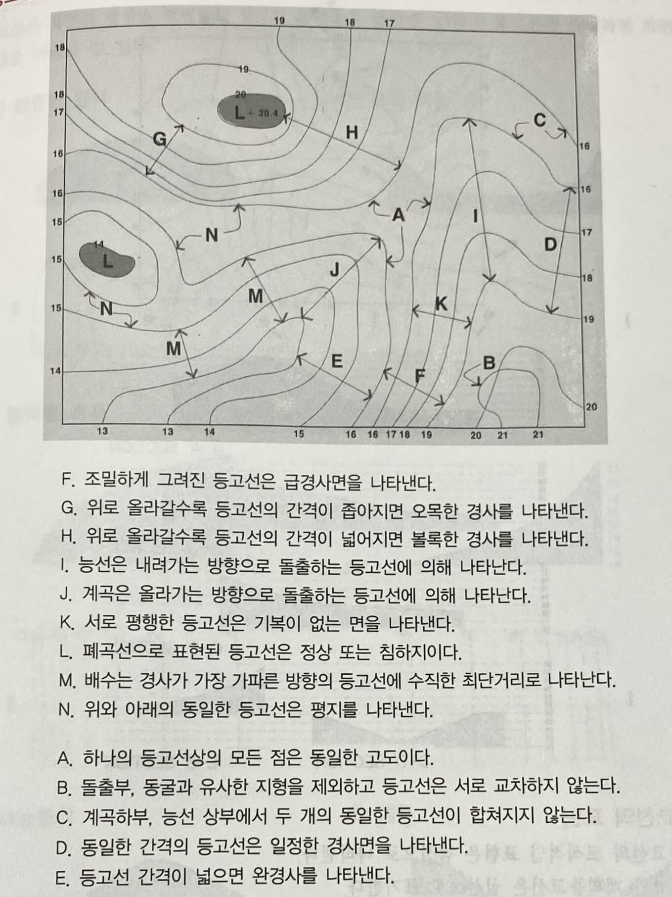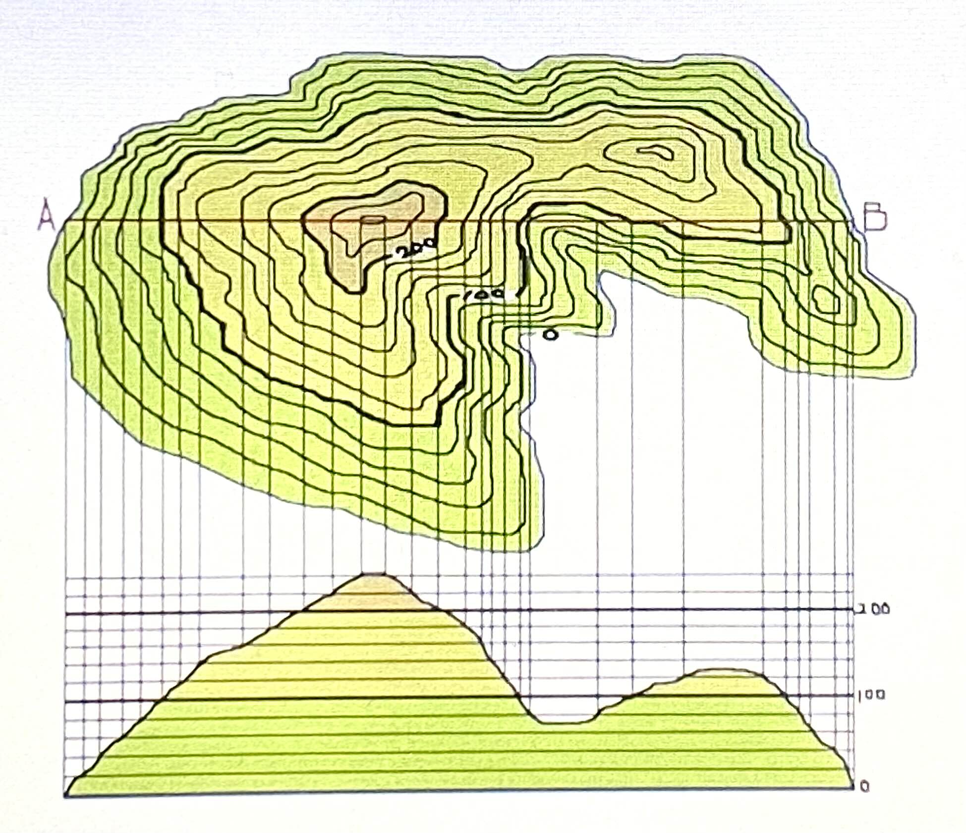 - 구해진 값은 높이차 1m에 해당하는 거리값이므로, 이를 다시 제시된 등고선에 맞도록 환산해주어야 한다.