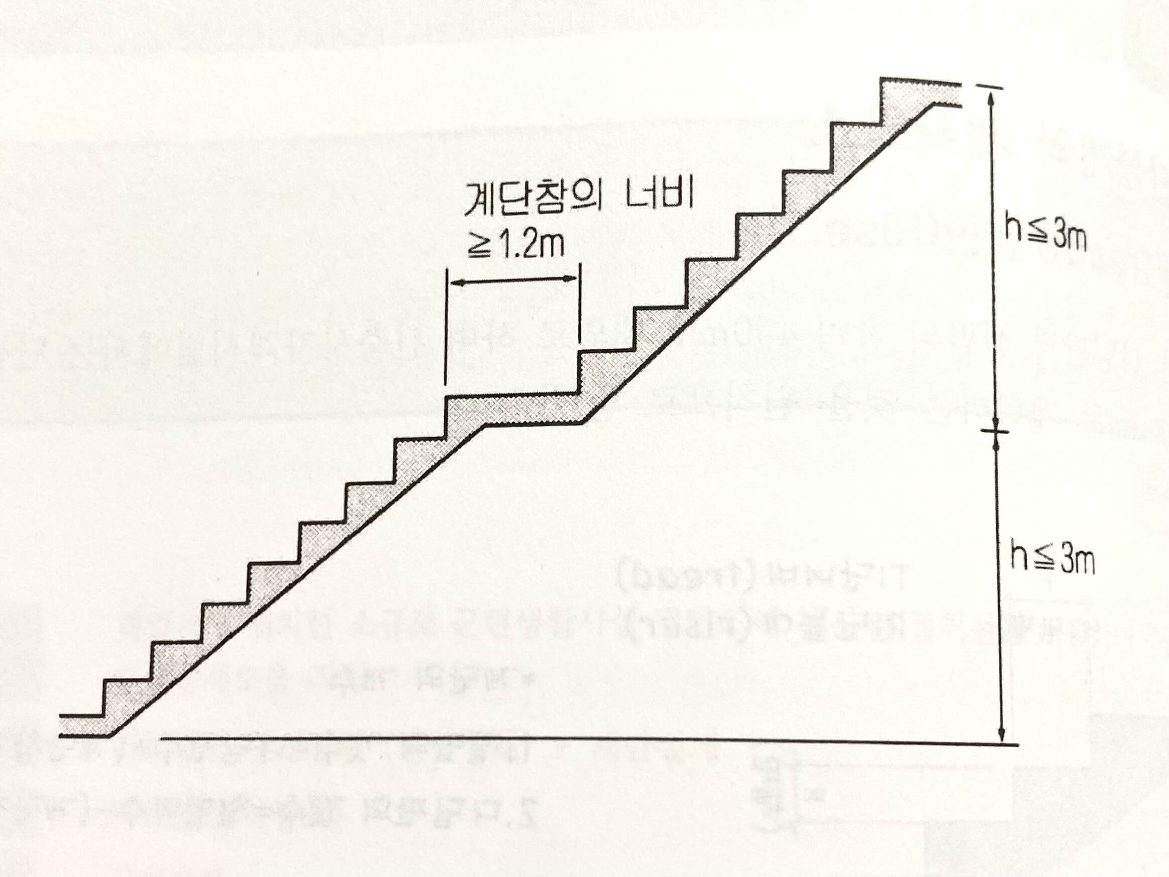 1. 높이가 3미터를 넘는 계단에는 높이 3미터 이내마다 유효너비 120센티미터 이상의 계단참을 설치할 것