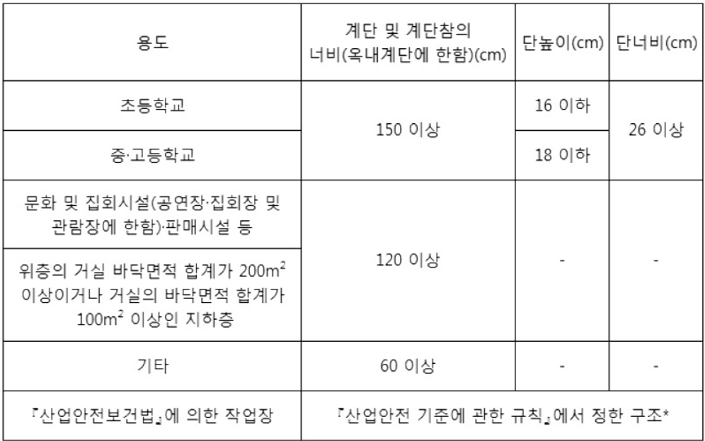 - 법적 근거 : 건축물의 피난ㆍ방화구조 등의 기준에 관한 규칙 ( 약칭: 건축물방화구조규칙 ) 제15조(계단의 설치기준)